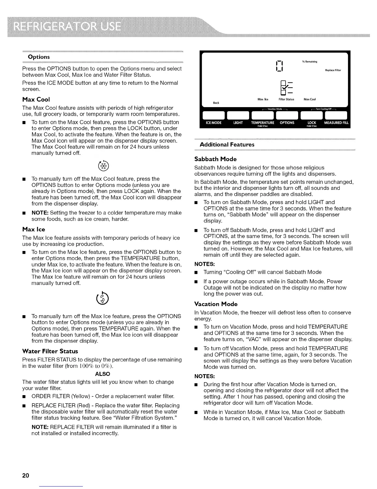 • While in Vacation Mode, if Max Ice, Max Cool or Sabbath