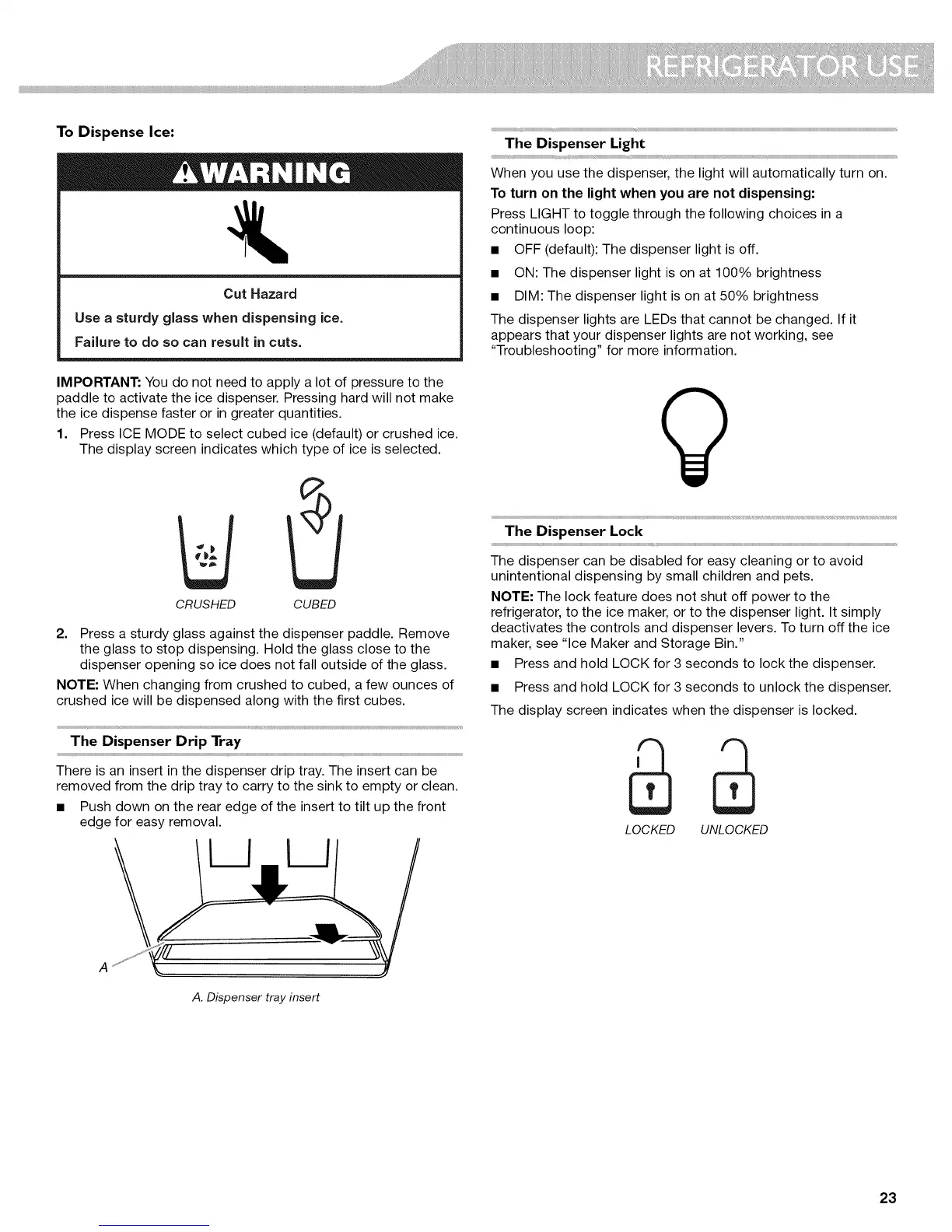 refrigerator, to the ice maker, or to the dispenser light. It simply