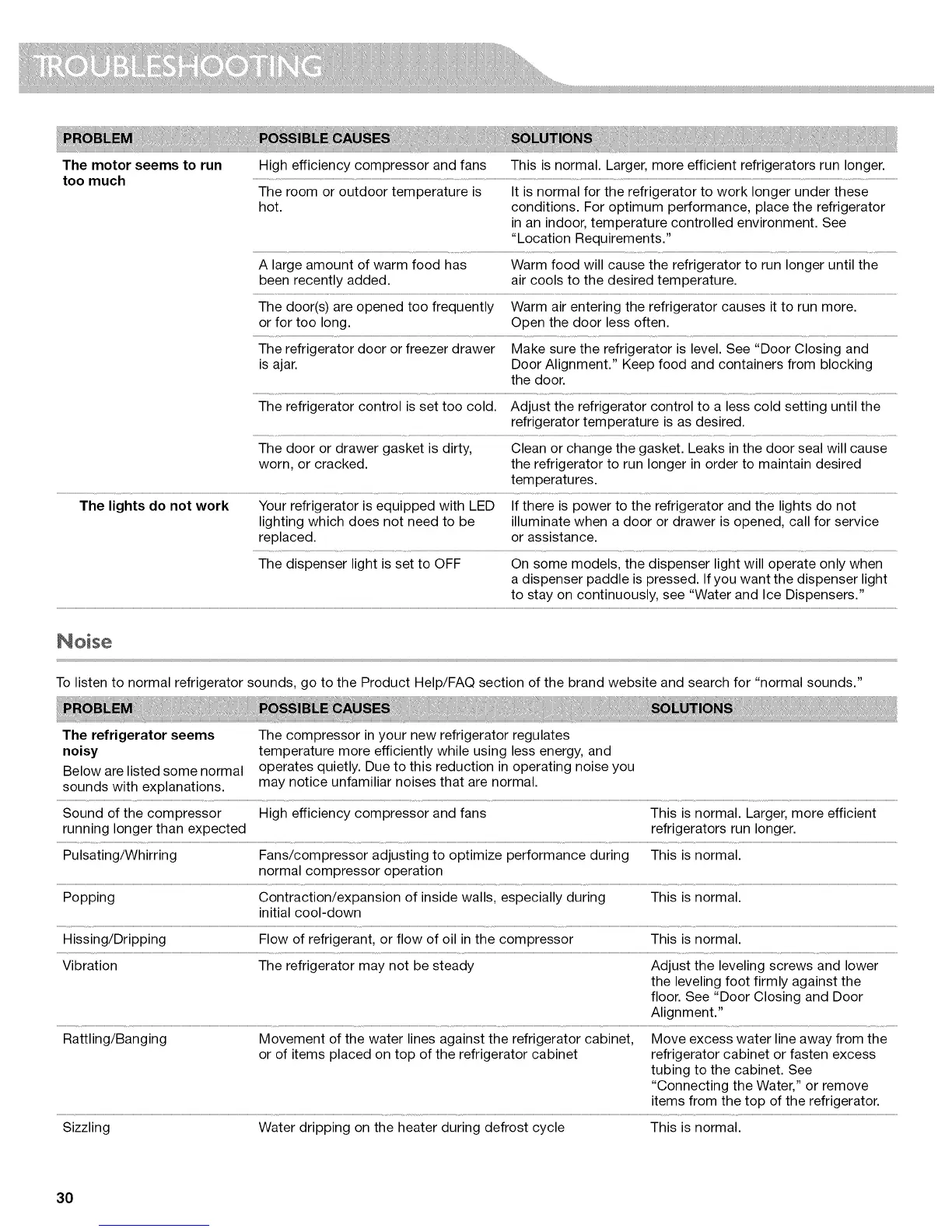 To listen to normal refrigerator sounds, go to the Product Help/FAQ section of the brand website and search for "normal sounds."