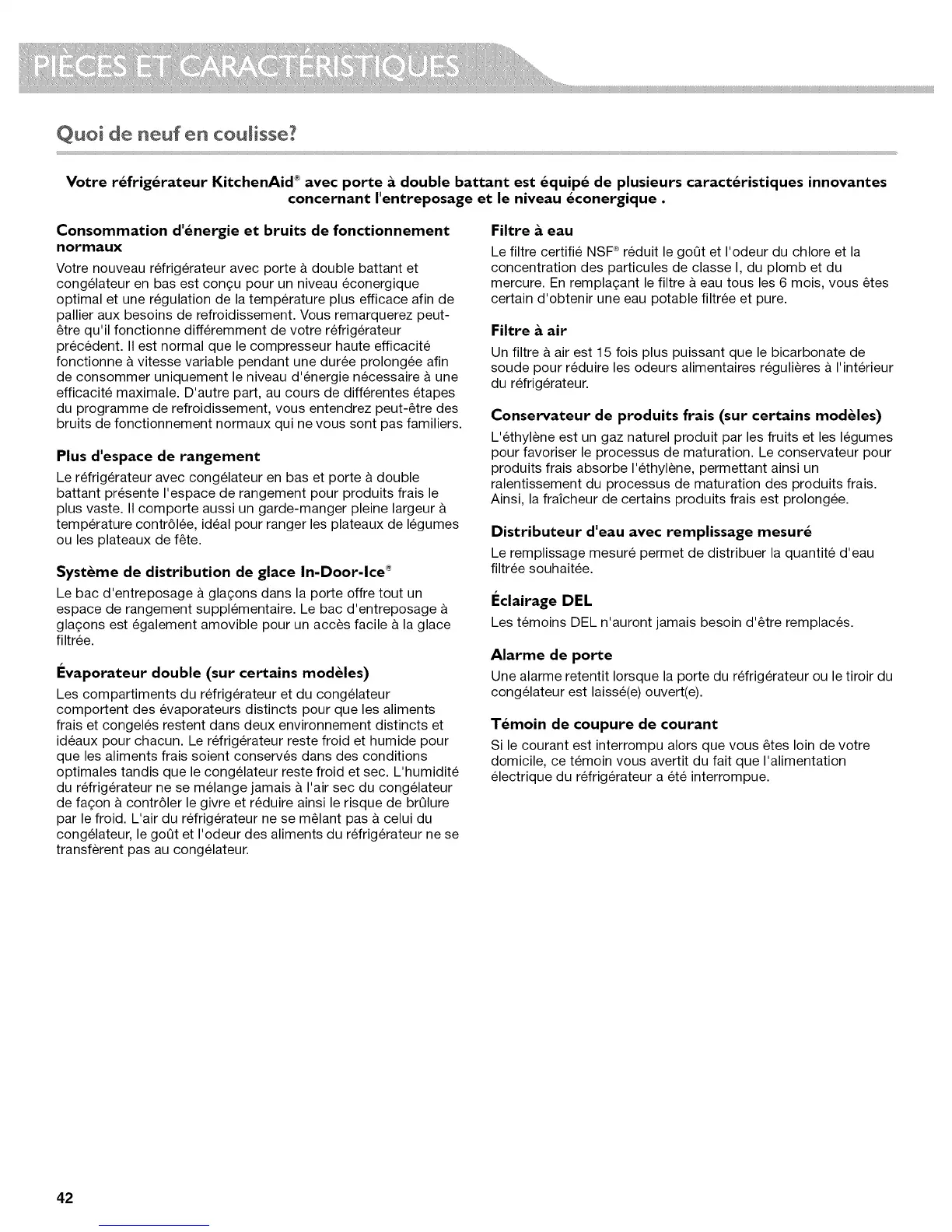 Votre refrigerateur KitchenAid _ avec porte & double battant est equipe de plusieurs caracteristiques innovantes