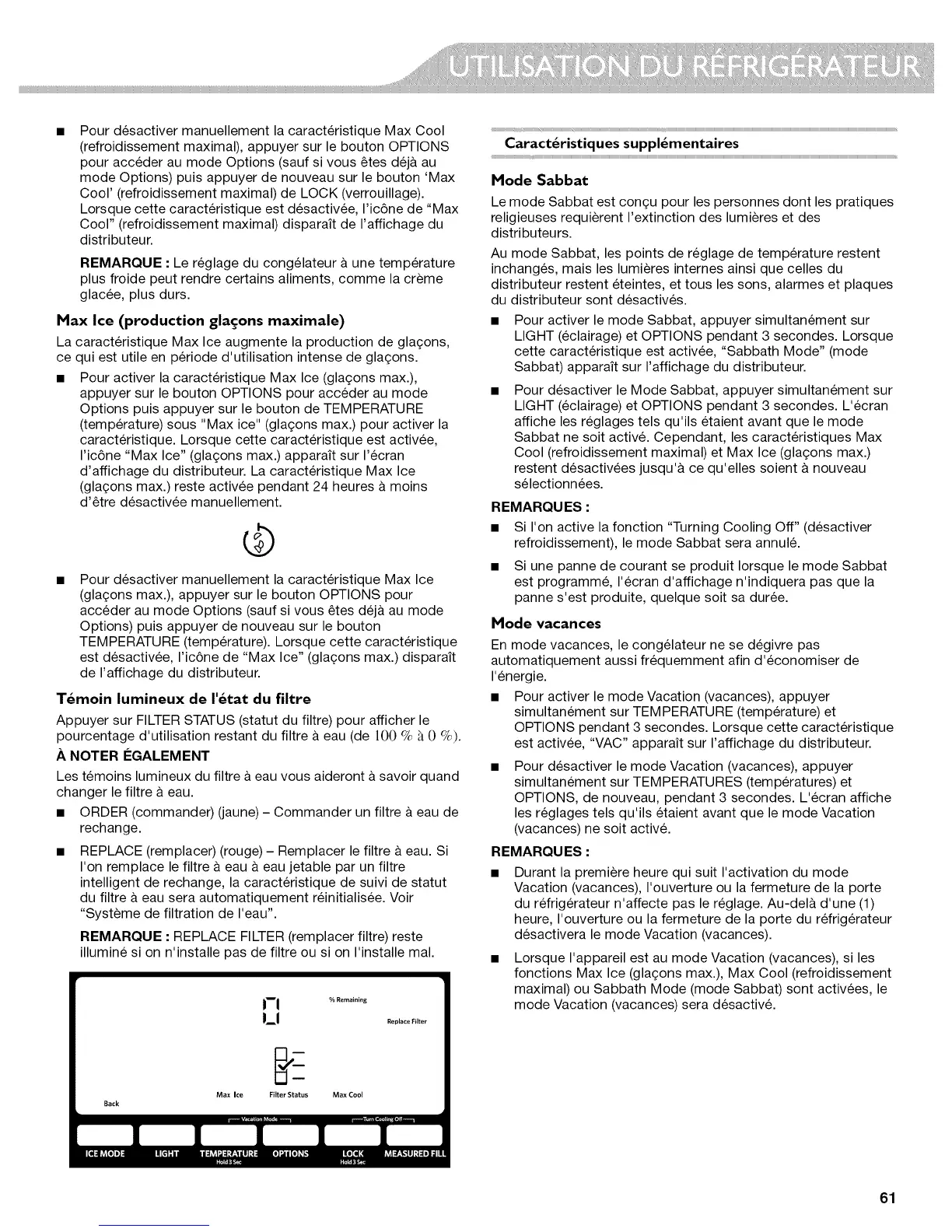 du filtre & eau sera automatiquement reinitialisee. Voir