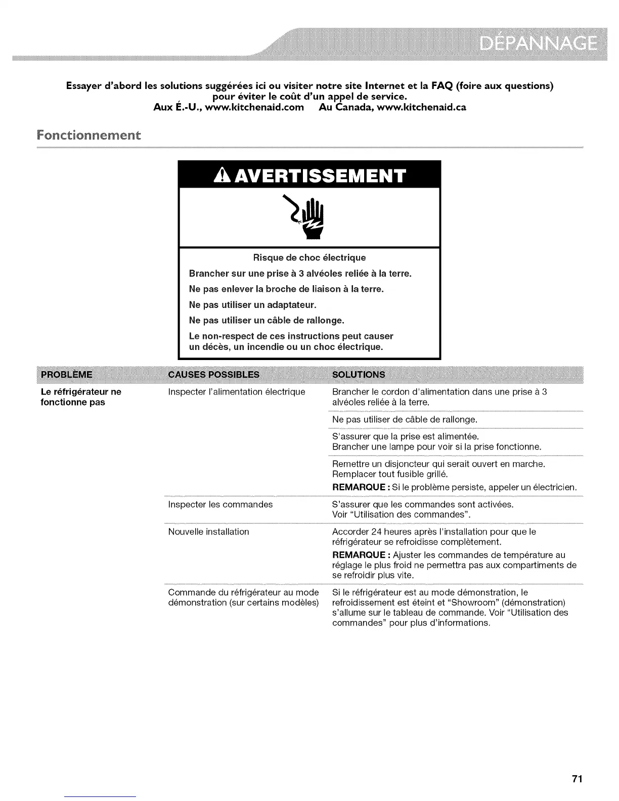 REMARQUE : Si le probleme persiste, appeler un electricien.