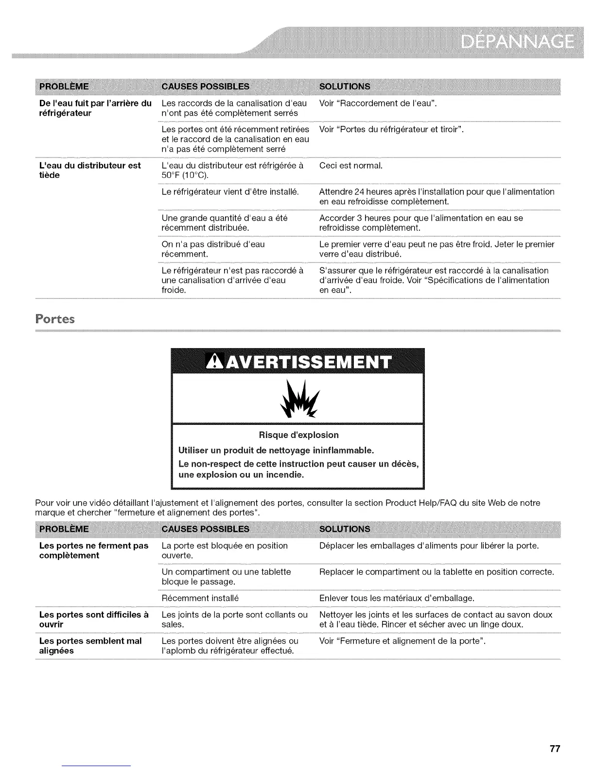Les portes semblent real Les portes doivent _tre alignees ou Voir "Fermeture et alignement de la porte".