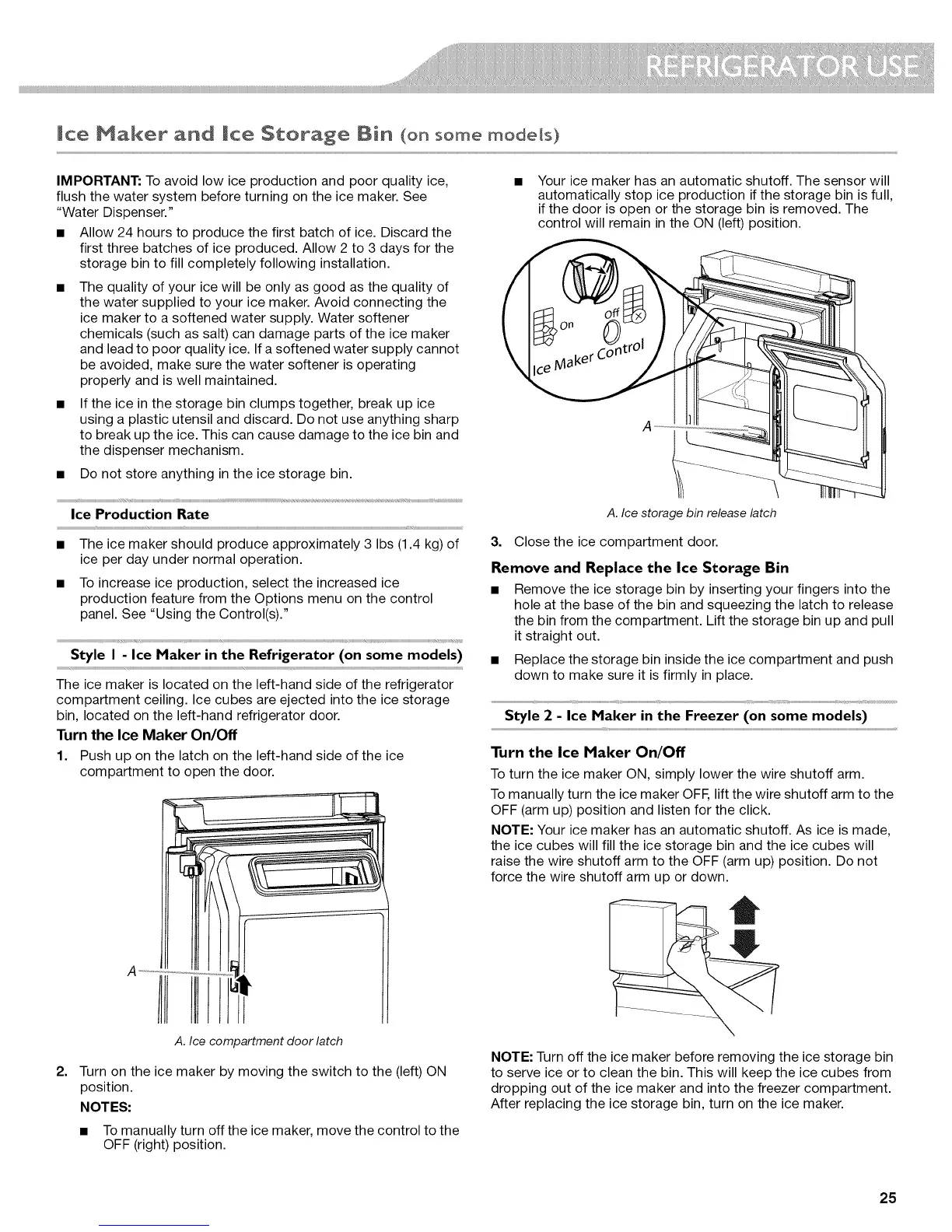 KitchenAid KFIS29PBMS03 - Ice Maker and Storage Bin Functions