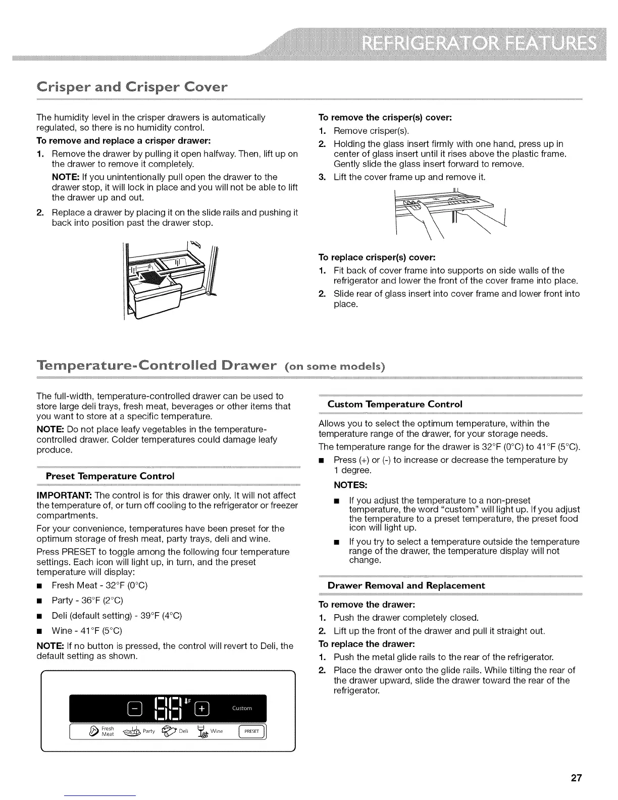 T÷mperatureoContro ed Drawer (on some mod÷ s)