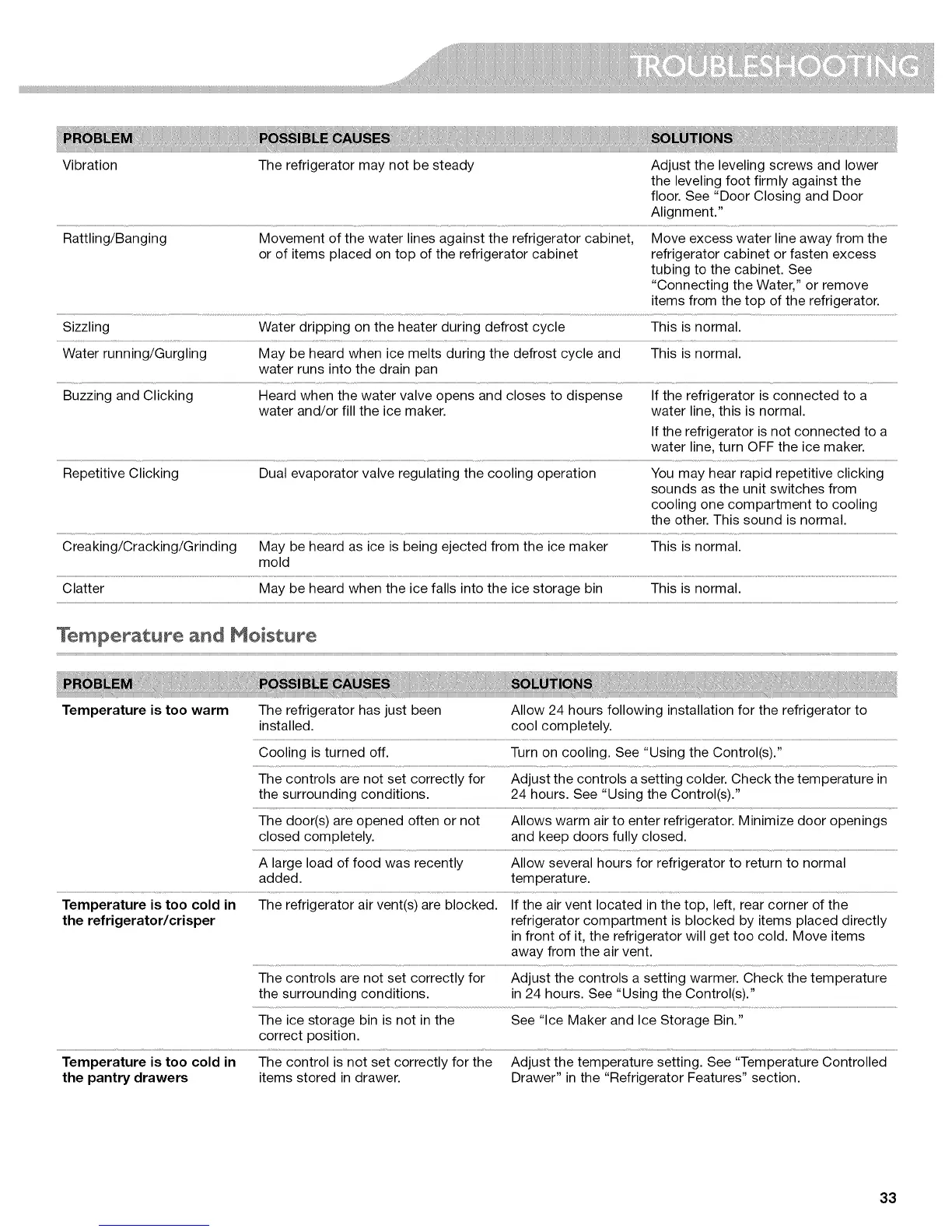 KitchenAid KFIS29PBMS03 - Temperature and Moisture Problem Solving