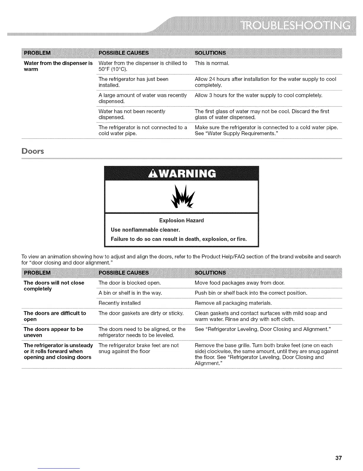 To view an animation showing how to adjust and align the doors, refer to the Product Help/FAQ section of the brand website and search