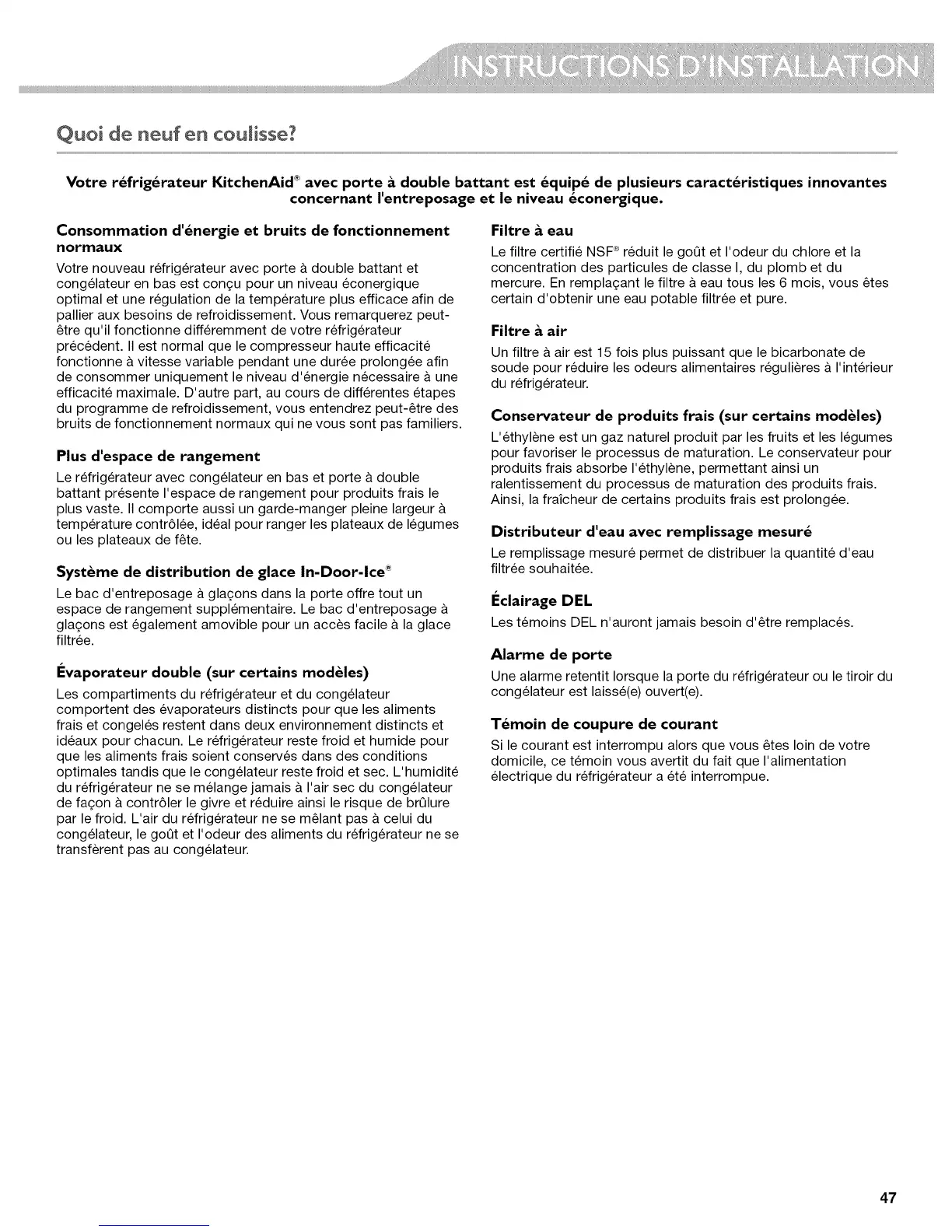 Votre refrigerateur KitchenAid _ avec porte & double battant est equipe de plusieurs caracteristiques innovantes