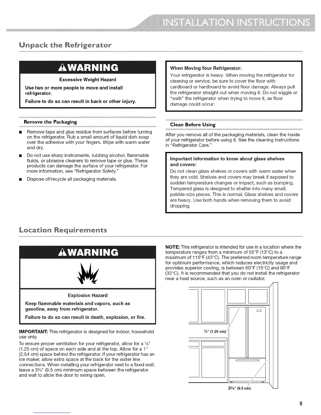 (2.54 cm) space behind the refrigerator. If your refrigerator has an