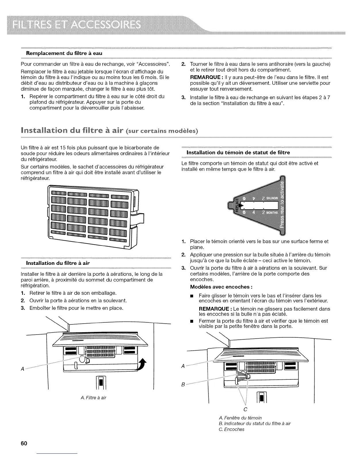 temoin du filtre & eau I'indique ou au moins tousles 6 mois. Si le