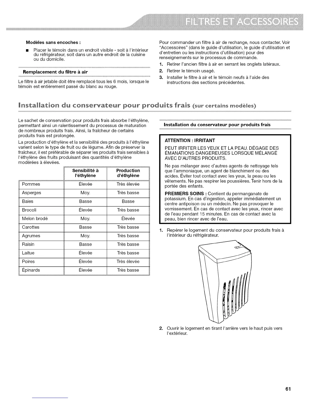frafcheur, il est preferable de separer les produits frais sensibles &