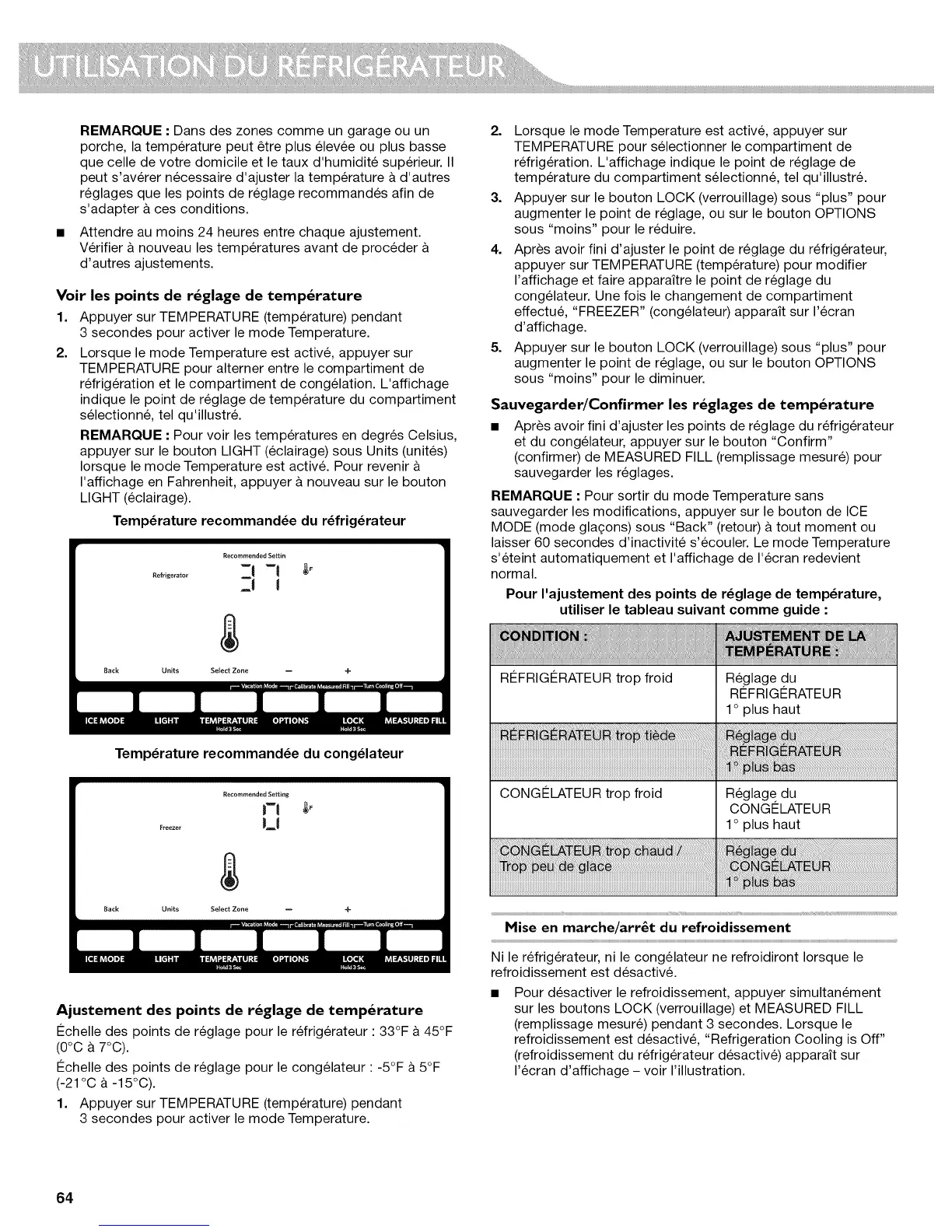 Apres avoir fini d'ajuster les points de reglage du refrigerateur