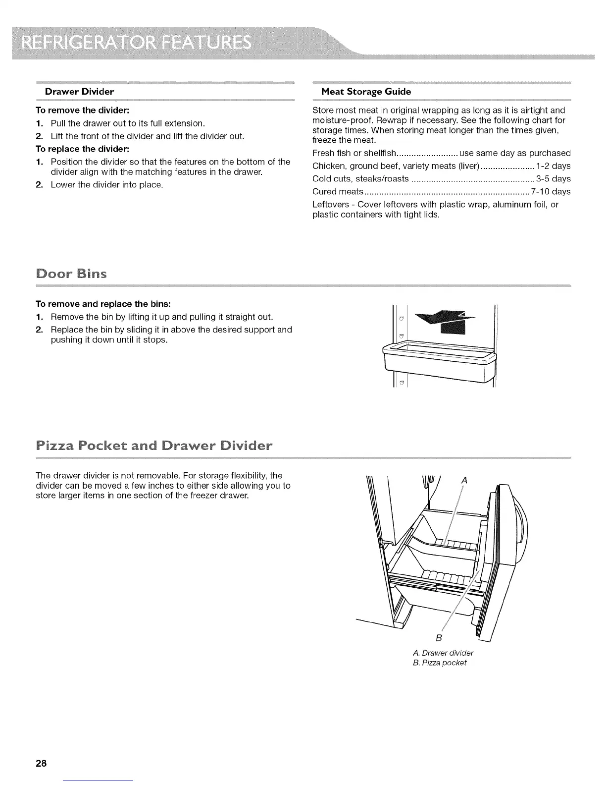 KitchenAid KFIV29PCMS03 - Drawer Divider; Meat Storage Guide; Door Features; Door Bins