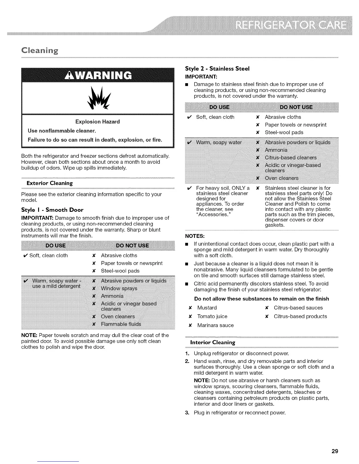 KitchenAid KFIV29PCMS03 - Exterior Cleaning Guidelines; Interior Cleaning Procedures