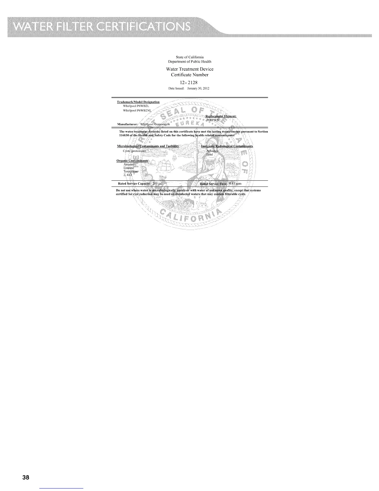 KitchenAid KFIV29PCMS03 - Water Filter Certifications