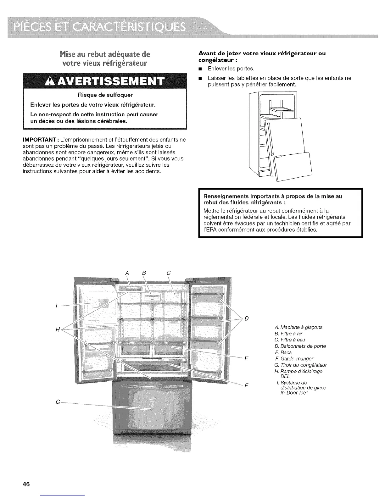 KitchenAid KFIV29PCMS03 - Mise Au Rebut Adequate de Votre Vieux Refrigerateur; Pii_Ces Et Caracti_Ristiques