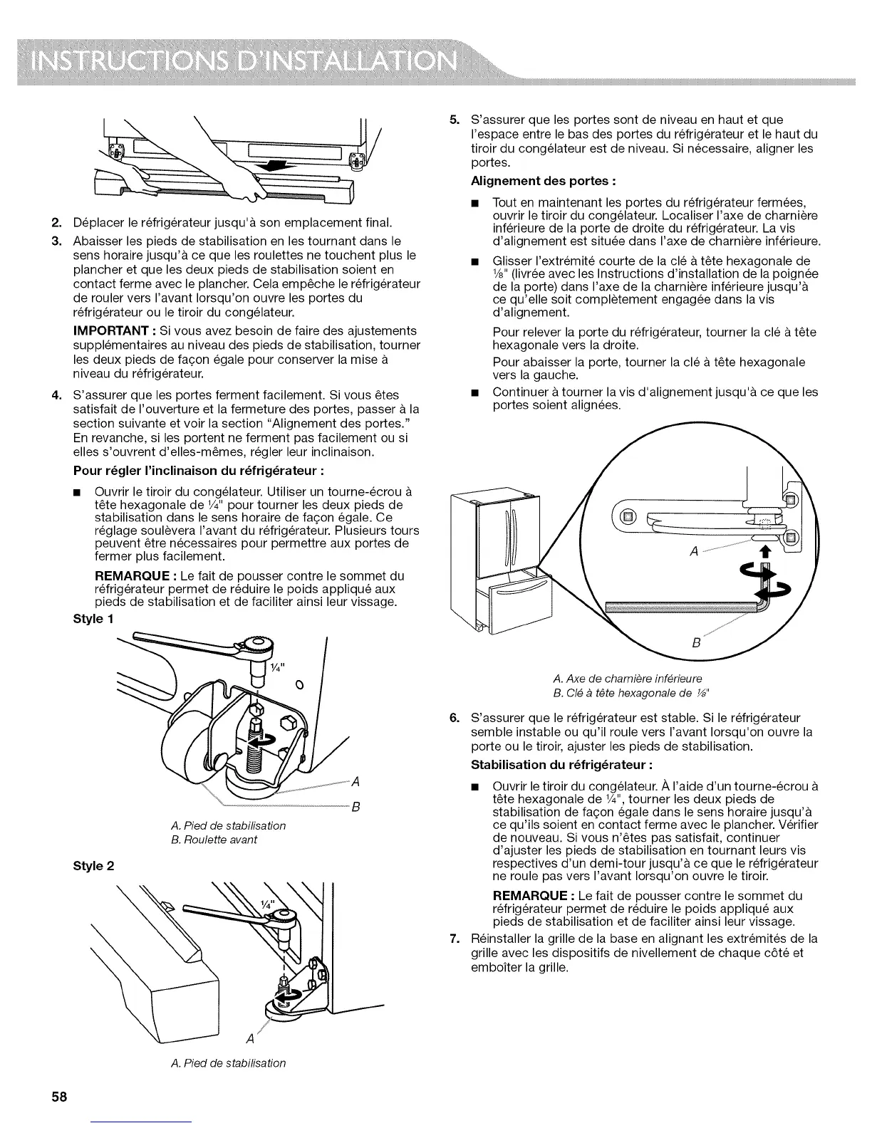 reglage soulevera I'avant du refrig6rateur. Plusieurs tours