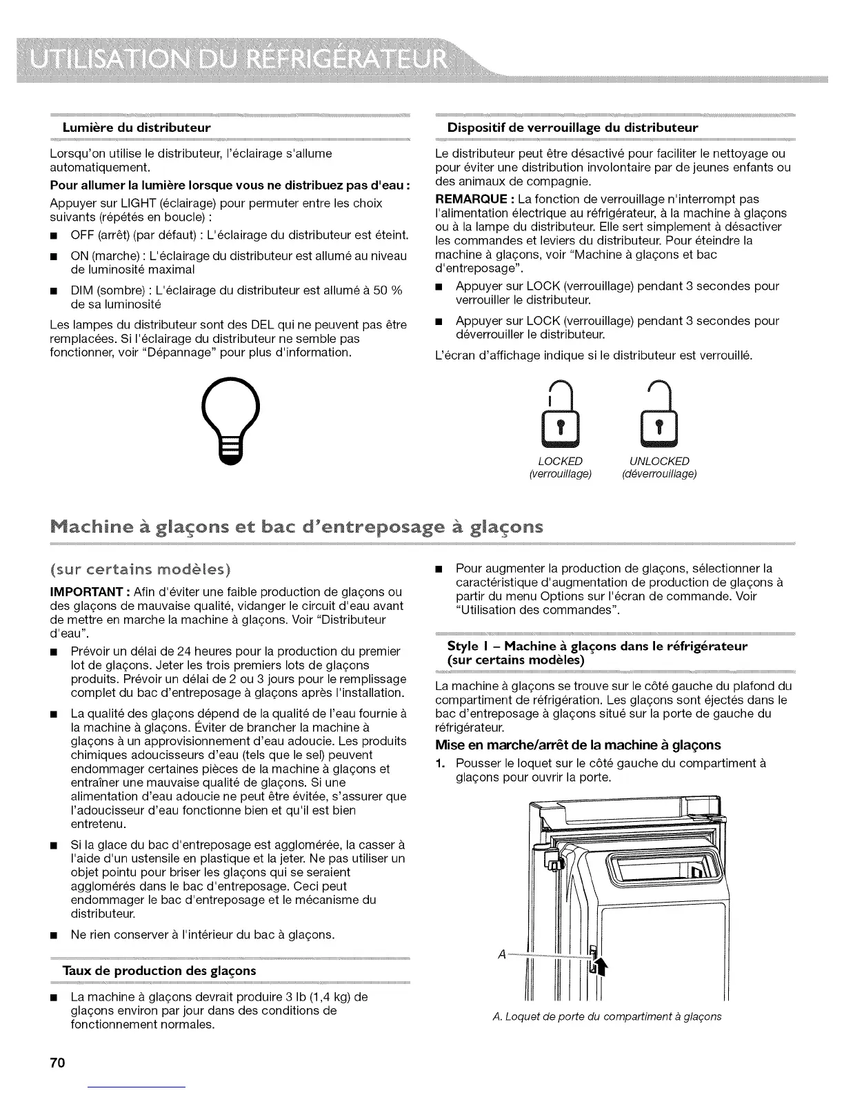 compartiment de refrigeration. Les glagons sont ejectes dans le