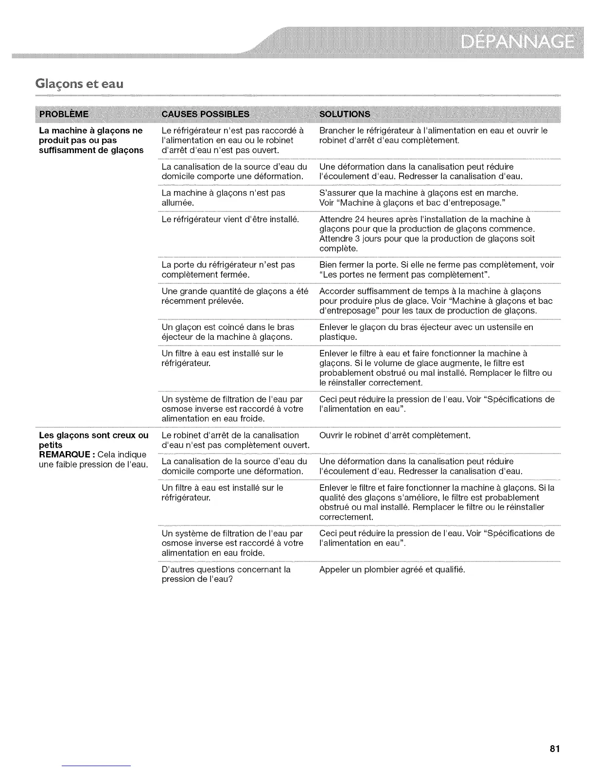 Un filtre & eau est installe sur le Enlever le filtre et faire fonctionner la machine & glagons. Si la