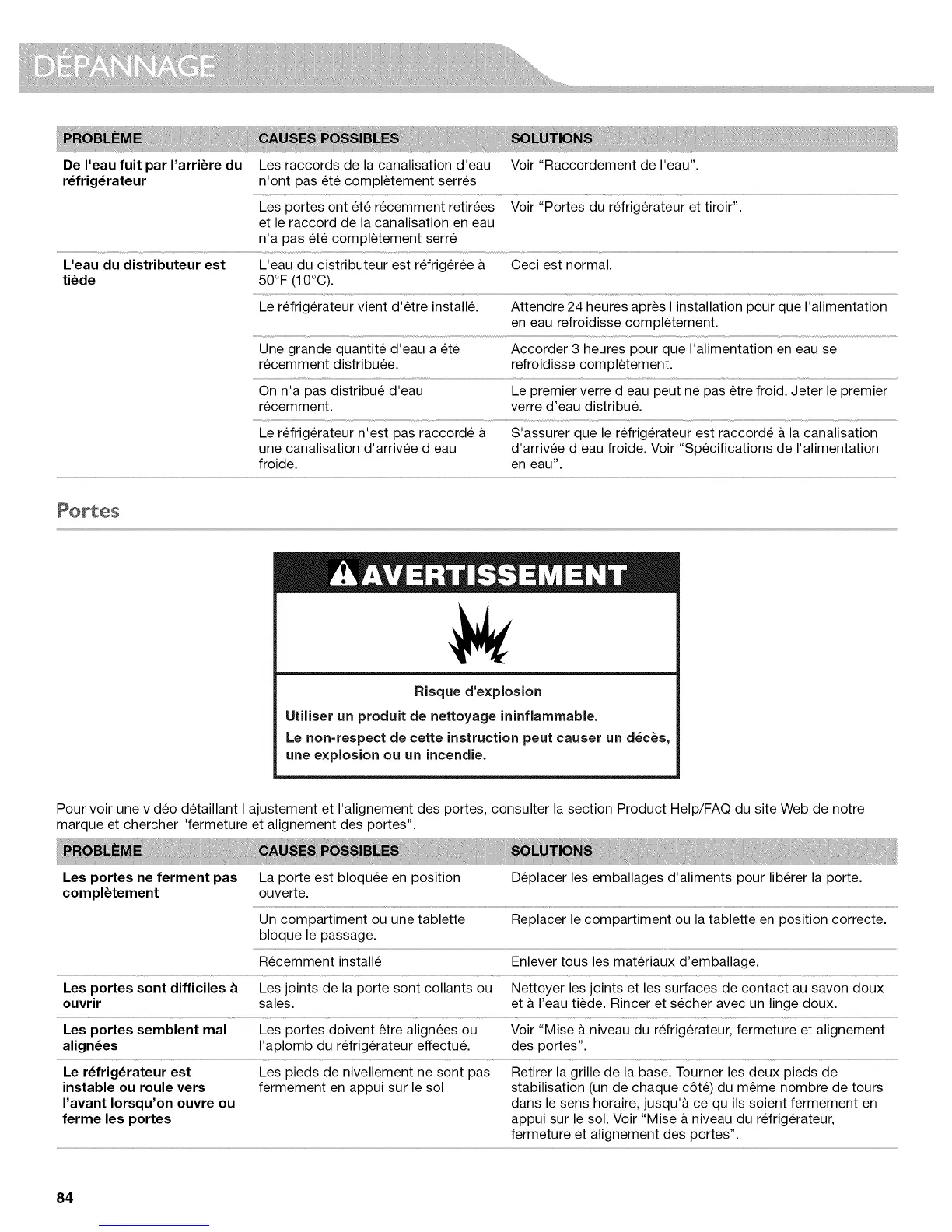Les portes semblent real Les portes doivent _tre alignees ou Voir "Mise & niveau du refrig6rateur, fermeture et alignement