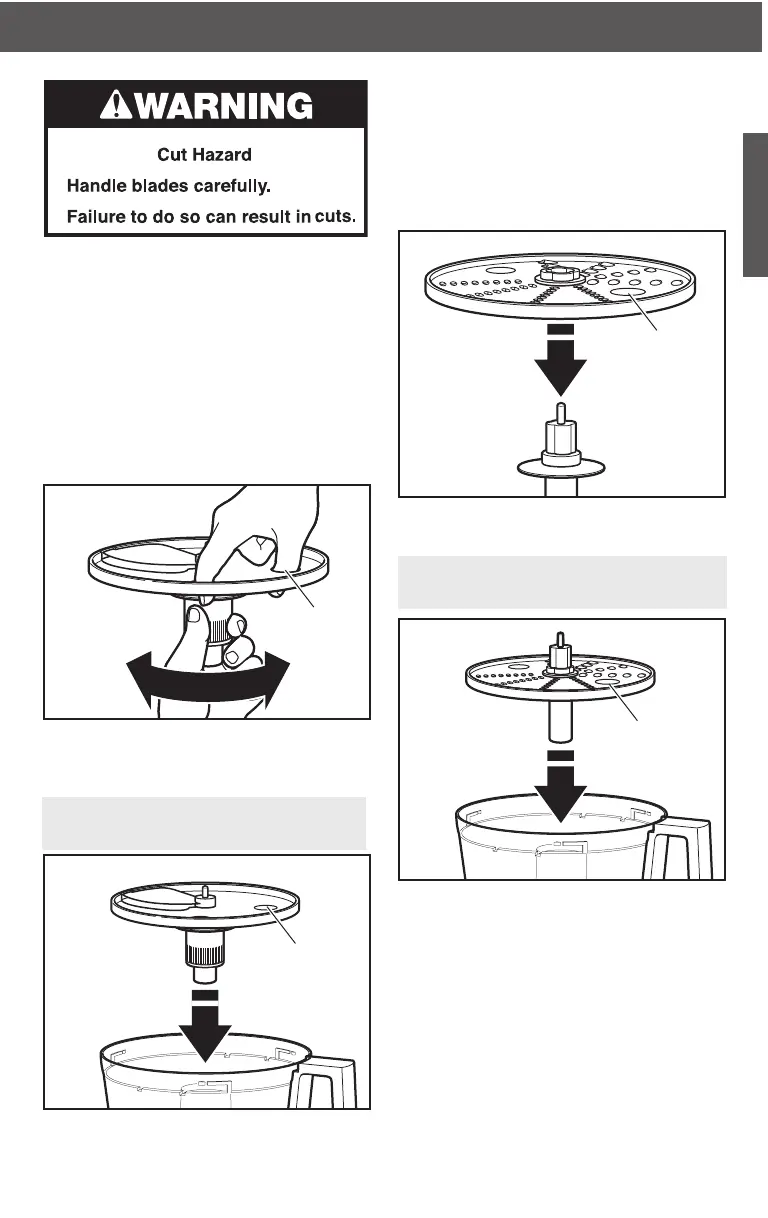 the slicing disk by the nger grips and