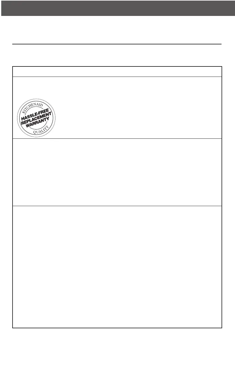 GARANTIE LIMITÉE. KITCHENAID ET KITCHENAID CANADA DÉCLINENT TOUTE