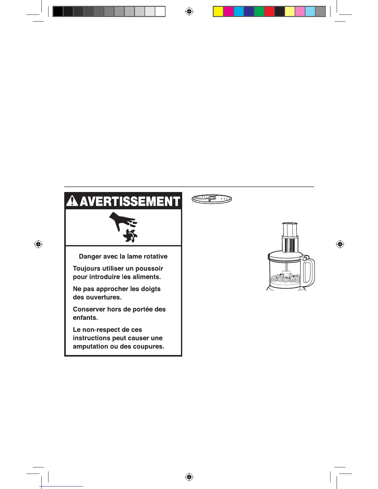 poussoir en deux parties. Placer les aliments