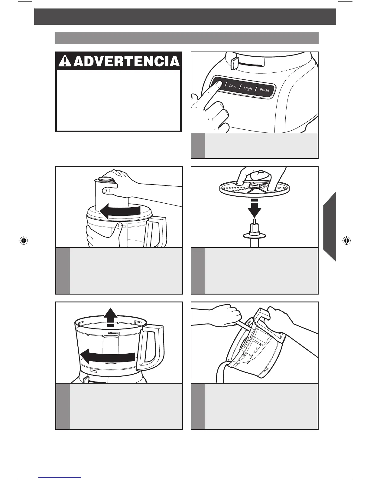 Gire la tapa del tazón de trabajo hacia la