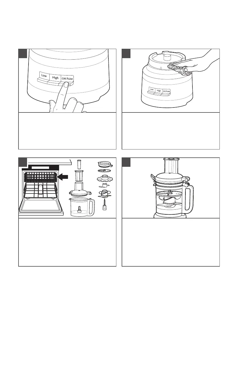 NOTA: Si va a lavar las piezas del procesador de alimentos a mano, evite usar productos
