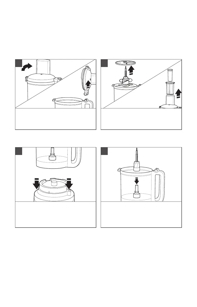 facing forward. Do not plug in the Food Processor until it is completely assembled.