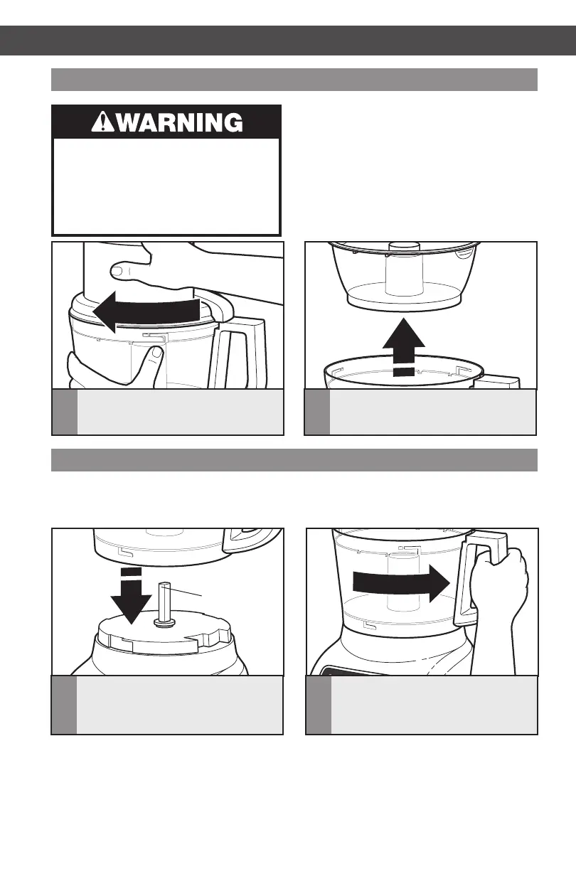 forward. Do not plug in the Food Processor until it is completely assembled.