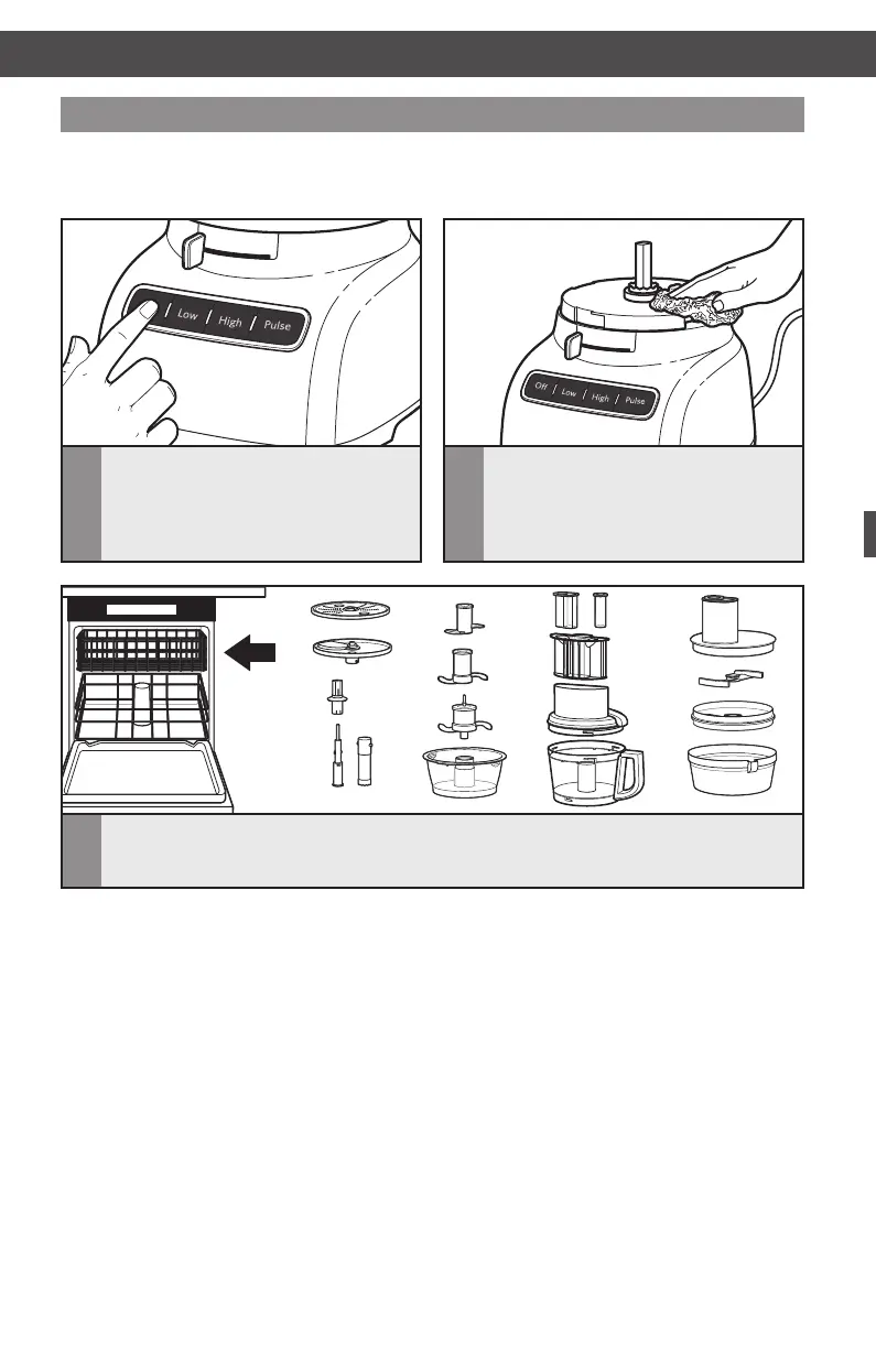 NOTE: If washing the Food Processor parts by hand, avoid the use of abrasive cleansers