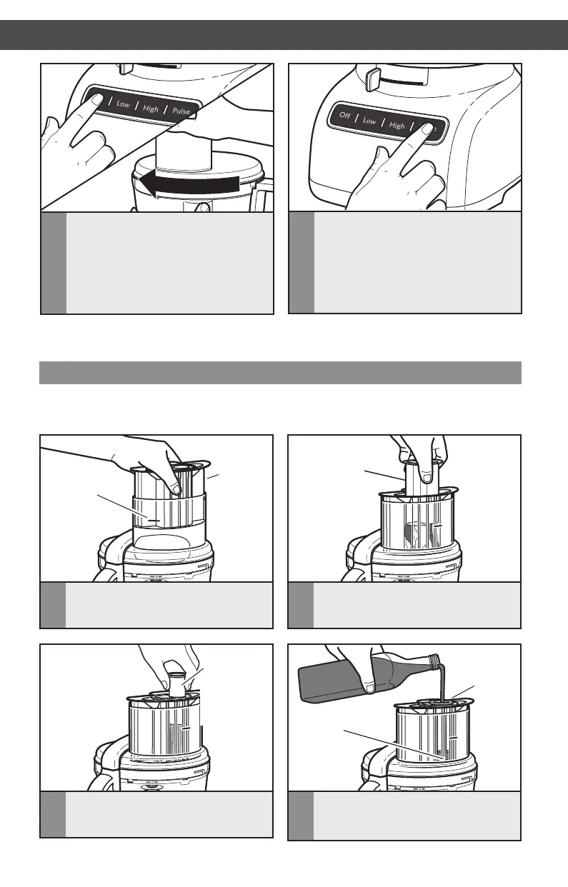 estén bien asegurados en la base (consulte “Cómo preparar el procesador de alimentos”).