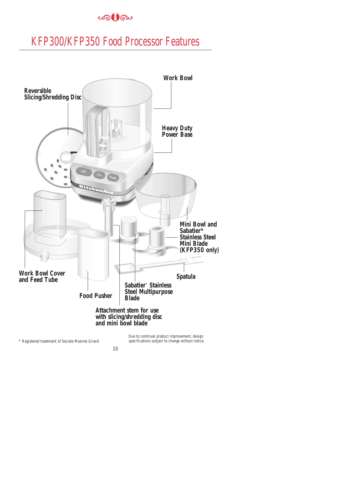 KFP300/KFP350 Food Processor Features