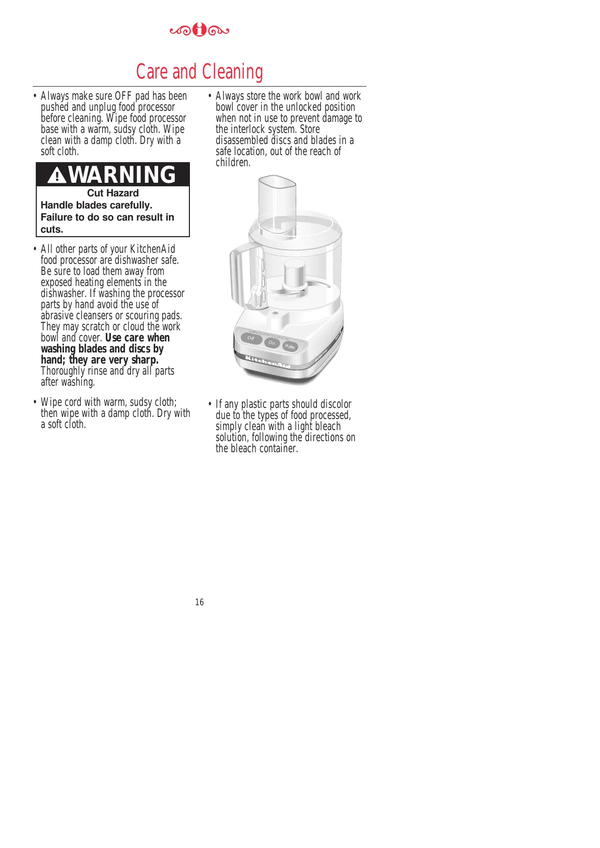 before cleaning. Wipe food processor