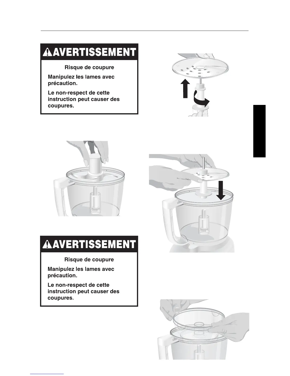 évitant les lames à trancher et à râper.