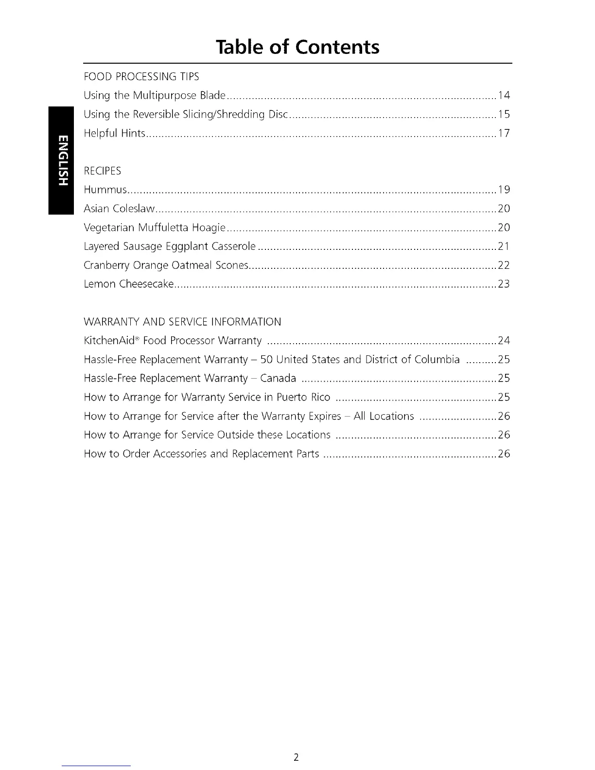 KitchenAid _ Food Processor Warranty .......................................................................... 24