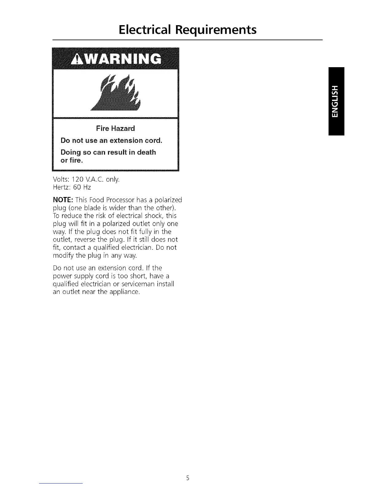 NOTE: This Food Processor has a polarized