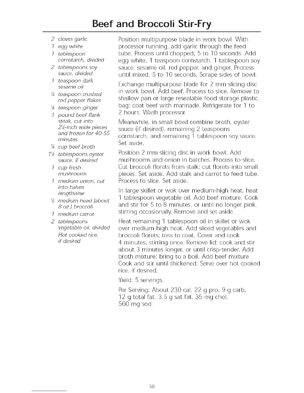 in work bowl. Add beef. Process to slice. Remove to
