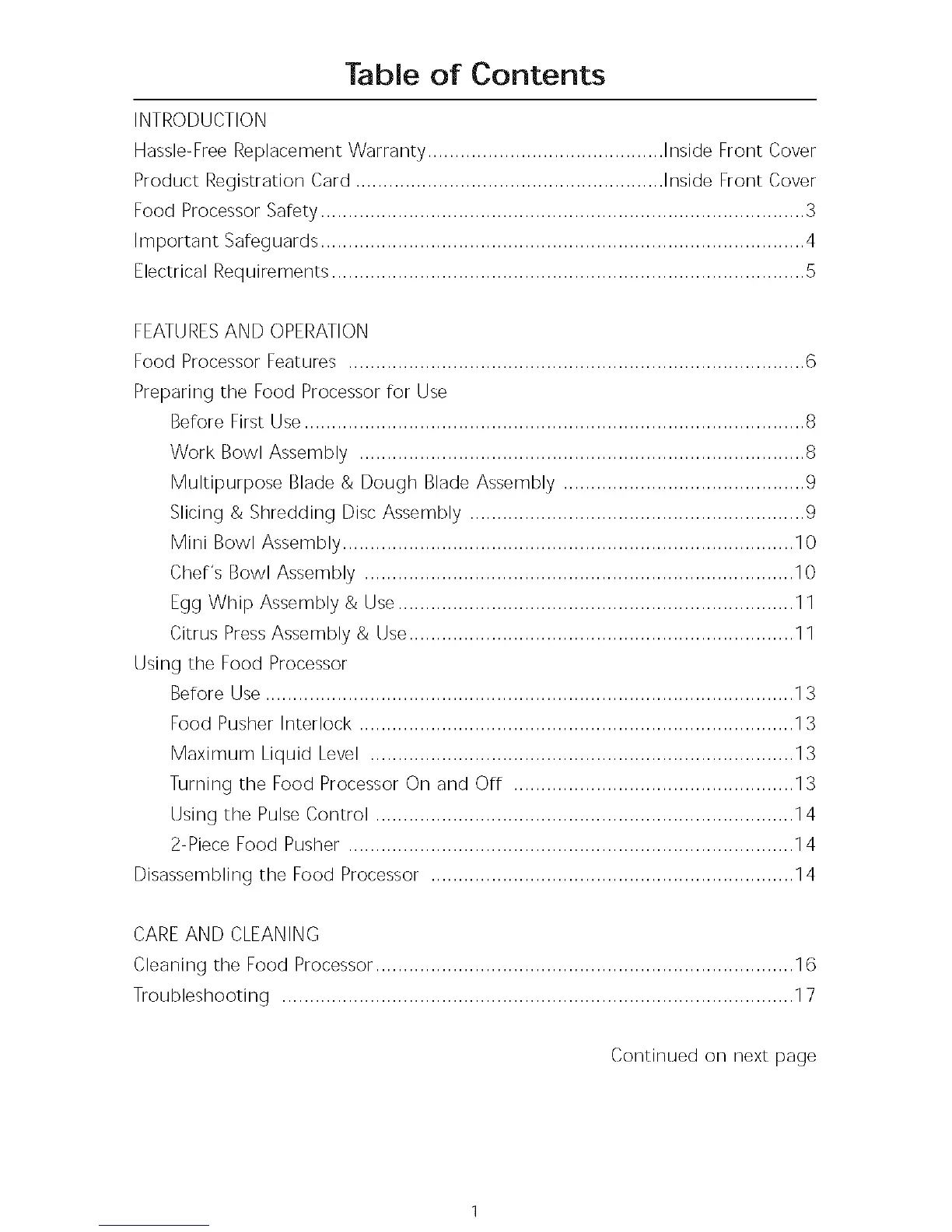 Cleaning the Food Processor............................................................................ 16