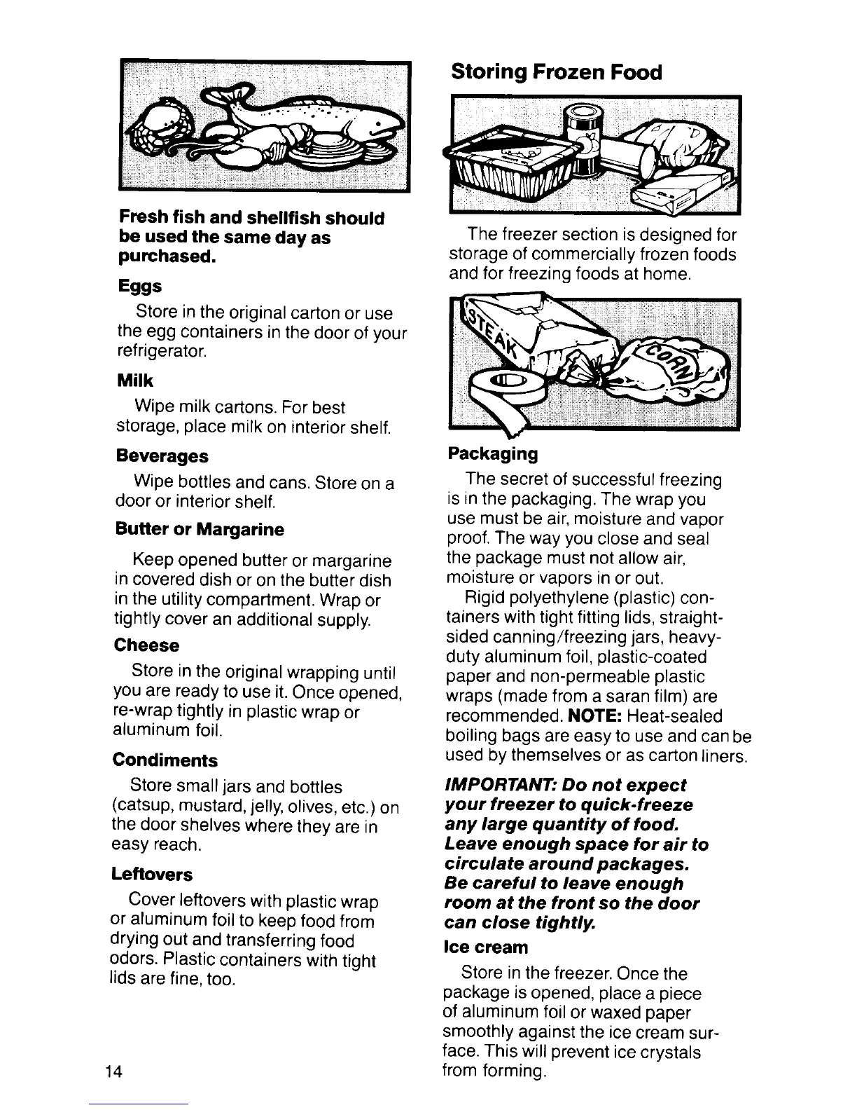 KitchenAid KFRF19MT - Food Storage Guide: Frozen Food; Storing Frozen Food; Packaging for Freezing