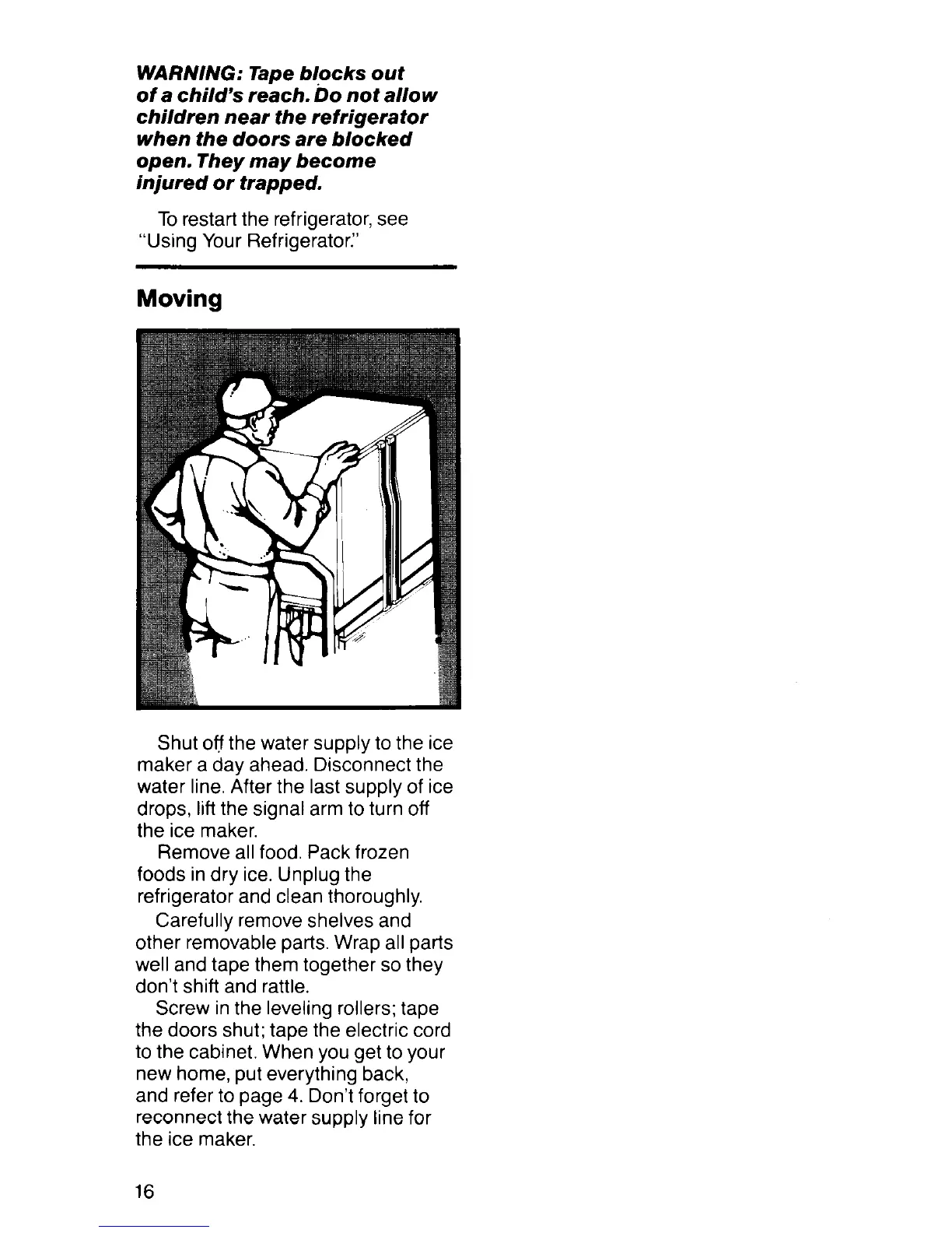 KitchenAid KFRF19MT - Moving Your Refrigerator; Moving
