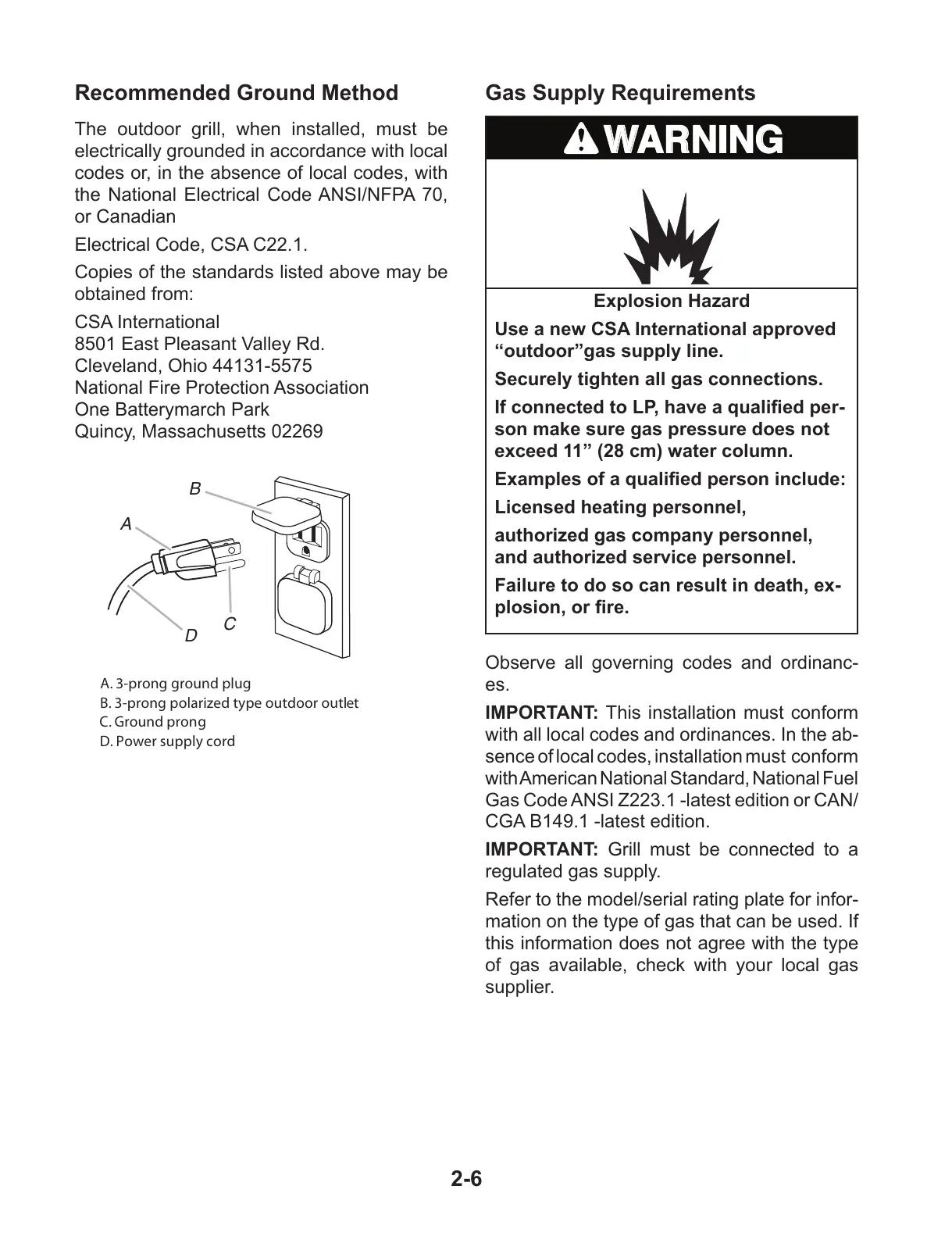 Gas Code ANSI Z223.1 -latest edition or CAN/