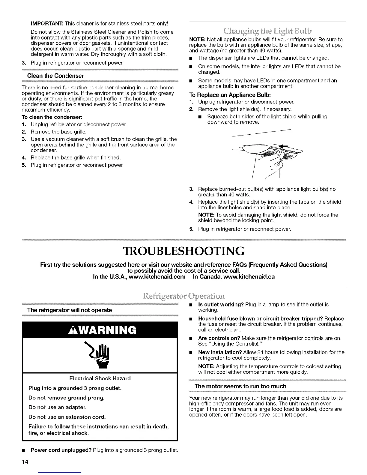 NOTE: Not all appliance bulbs will fit your refrigerator. Be sure to