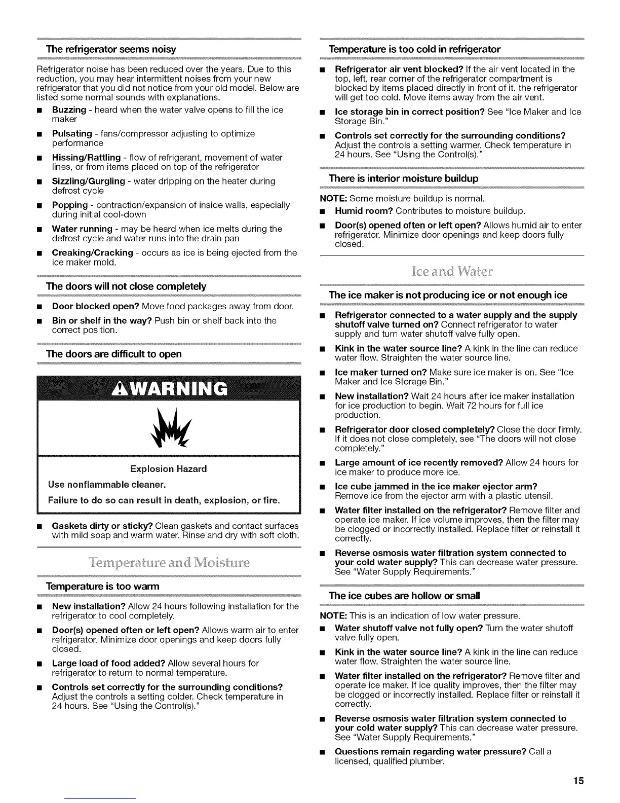Ice storage bin in correct position? See "Ice Maker and Ice
