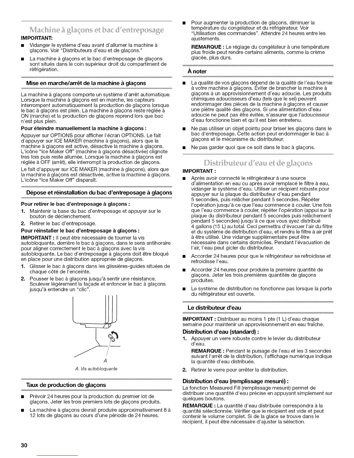 autobloquante. Le bac d'entreposage & gla£;ons doit etre bloqu6