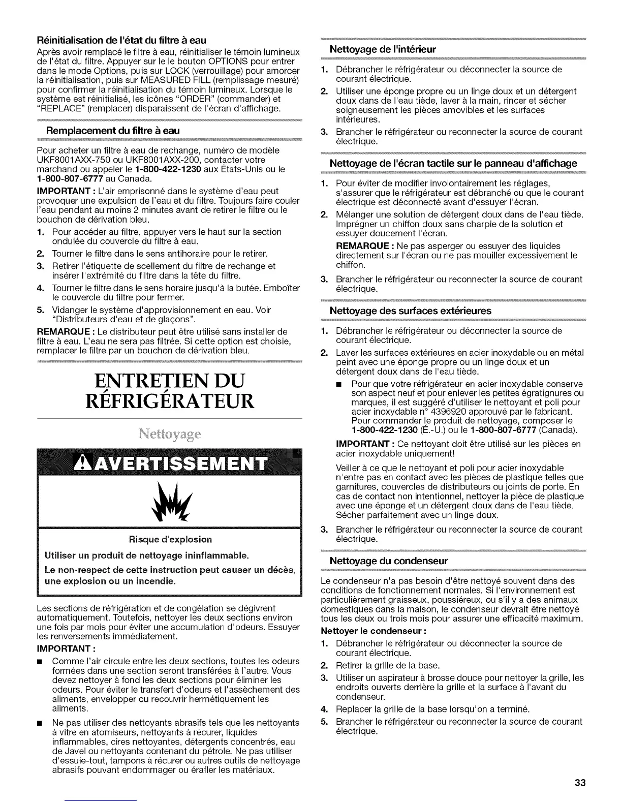 Remplacement du filtre & eau