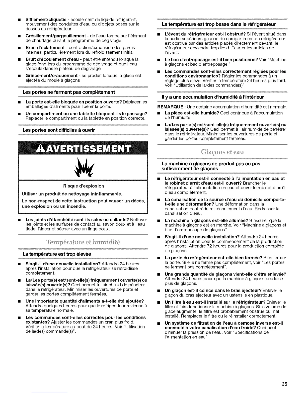 REMARQUE : Une certaine accumulation d'humidite est normale.