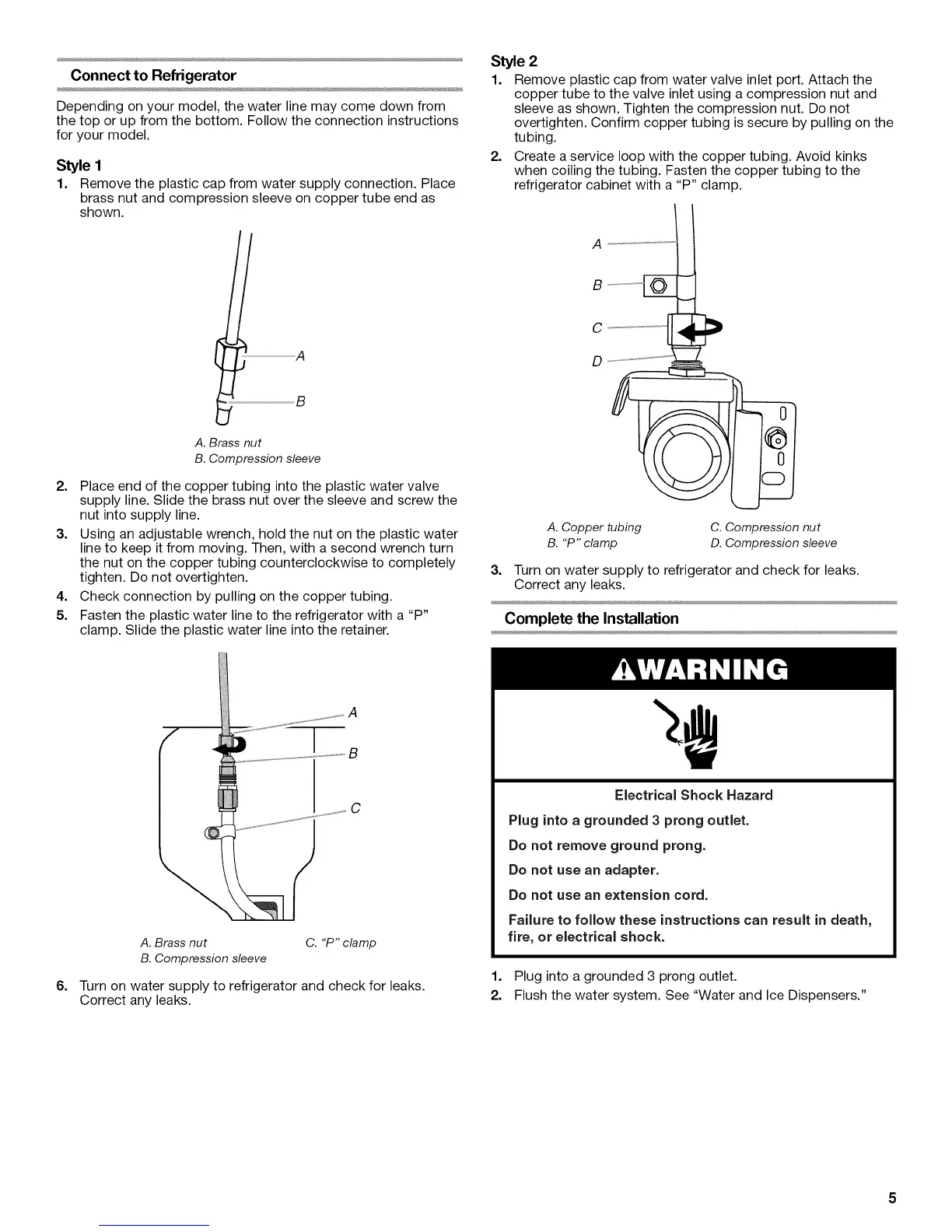 overtighten. Confirm copper tubing is secure by pulling on the