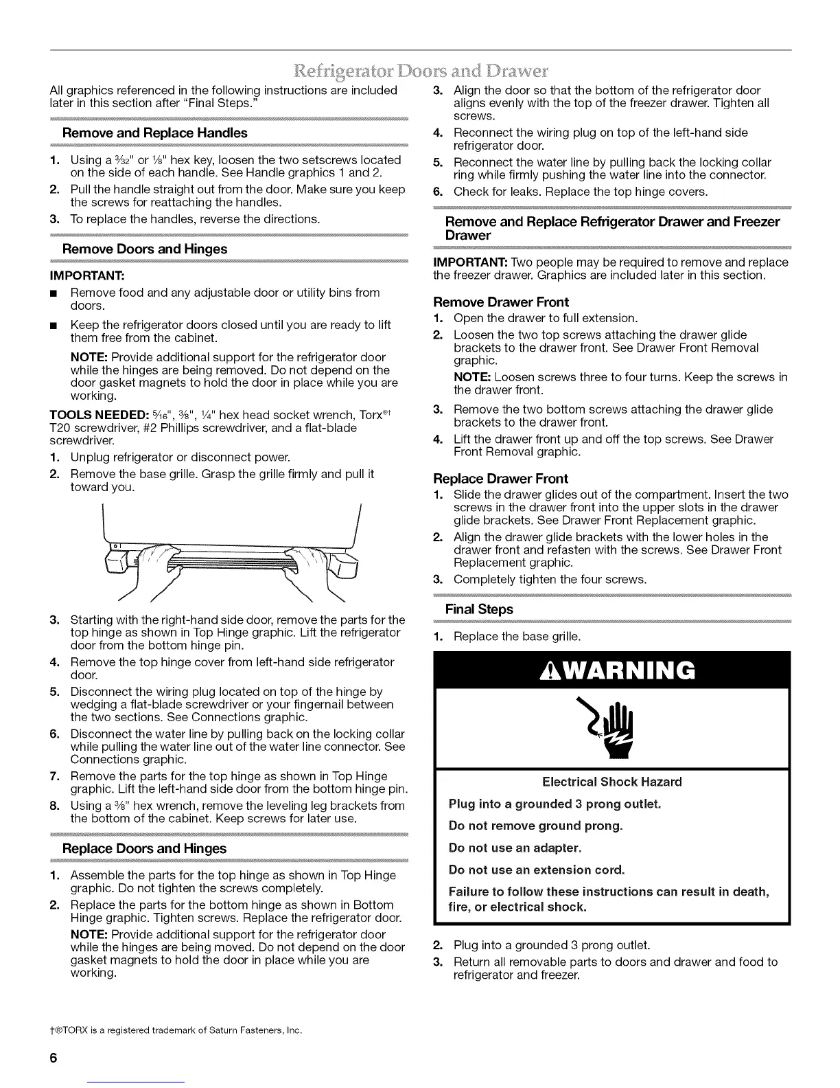 top hinge as shown in Top Hinge graphic. Lift the refrigerator